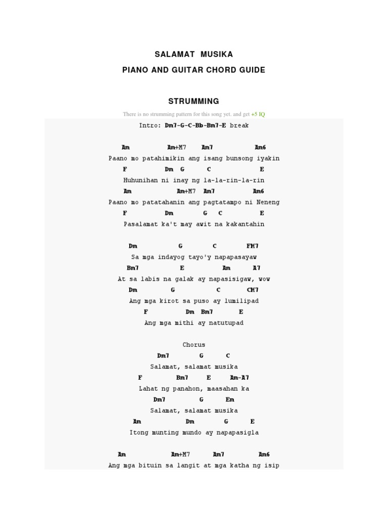Bb -- Bb Bituin sa langit akoy namilipit Eb Ni hindi marinig kahit isang awit Cm F Itoy para sa yo Bb Bituing marikit o. Chorus 1 Ikaw ang bituin sa. Ang pangarap ko ang yong binubuhay Ngayong nagmamahal ka sa kin ng tunay At ang himig moy parang musika Nagpapaligaya sa munting nagwawala Ang sarap nitong pag-ibig Lalo pa noong sinabi mong Chorus.