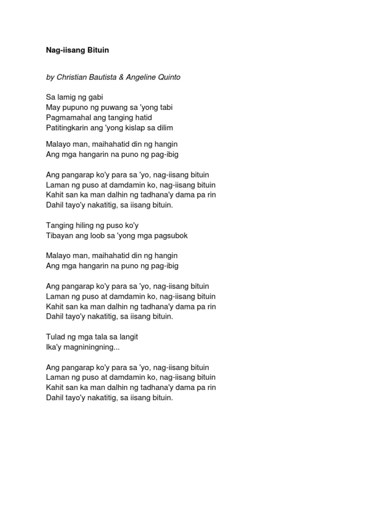 Nag iisang bituin with lyrics. Preview the embedded widget. Because were staring at the same star. Though far the wind will bring.